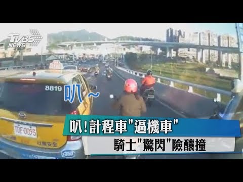 叭!計程車"逼機車" 騎士"驚閃"險釀撞
