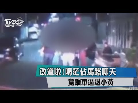 改道啦!喝茫佔馬路聊天 竟踹車逼退小黃