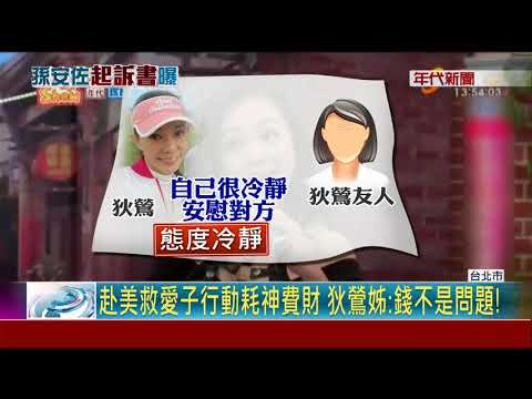 孫鵬、狄鶯獨子孫安佐因揚言恐攻在美遭捕,夫妻倆30號晚間搭機赴美救子,據了解狄鶯態度十分冷靜,不但不慌張還反過來安慰友人,鎮定得讓友人覺得不可思議,連她親姊姊狄玫今也說「狄鶯很堅強」,這場赴美救子耗神又耗錢,但小孩平安最重要,現在錢根本不是問題。
