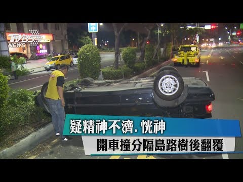 疑精神不濟、恍神 開車撞分隔島路樹後翻覆