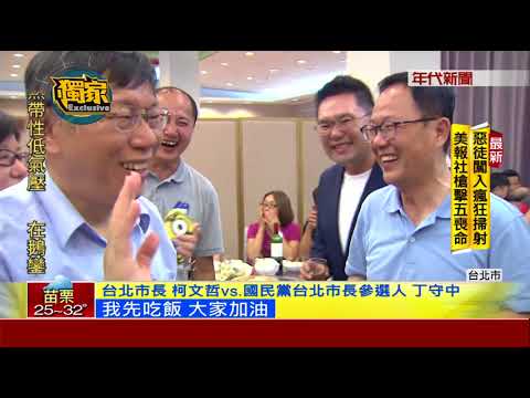 台北市長柯文哲今(28)天上午參加防災演練,遭到獨派團體丟鞋,讓外界擔心市長的維安是否需要加強,不過柯文哲晚間出席和里長們的聯誼會時,身邊隨扈並沒有因此增加,柯文哲的心情看似也不受影響,倒是在會場"強碰"國民黨台北市長參選人丁守中,兩人在里長們之間比人氣,較勁意味十分濃厚。