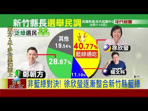 新竹縣長選舉民調今(11)出爐,民國黨參選人徐欣瑩以32.56%支持度,勝過國民黨楊文科的23.25%,以及民進黨鄭朝方的9.11%,徐欣瑩在藍營支持者中,拿下三成支持度,綠營選民也囊括4成支持度。徐欣瑩高知名度,加上柯文哲支持,都是領先關鍵,看得出新竹縣已非藍綠對決態勢,徐欣瑩逐漸整合藍綠。