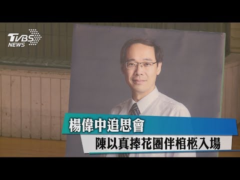 楊偉中追思會 陳以真捧花圈伴棺柩入場