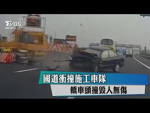 國道衝撞施工車隊 轎車頭撞毀人無傷