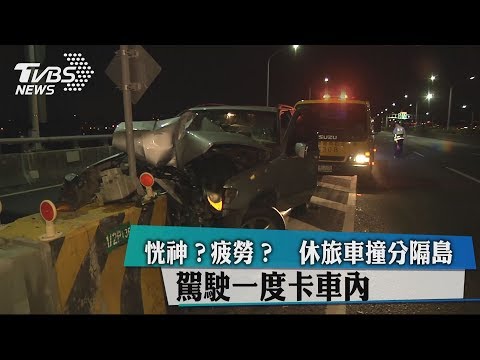恍神?疲勞? 休旅車撞分隔島 駕駛一度卡車內