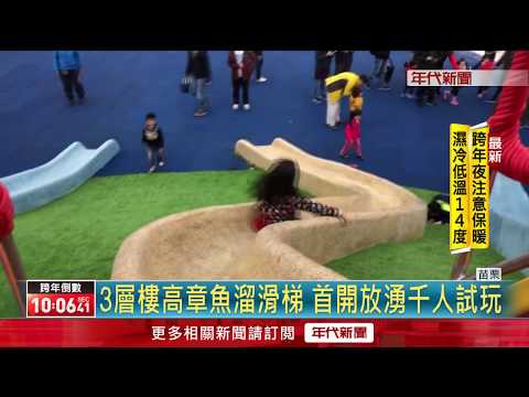 苗栗縣最新的完工的,一座親子公園,標榜有3樓高的八爪章魚磨石子滑梯,刺激好玩,元旦假期開放體驗,想不到湧入上千名親子搶先體驗,人數太多,大家全都擠來擠去,溜滑梯,幾乎是擠成人肉沙包,家長家長看得心驚膽跳,直說好危險,幸好還沒傳出受傷意外。