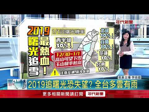 冷到明年! 強烈大陸冷氣團報到,濕冷一整周,明後天最冷恐探11度,下雨+陣風,明天新竹體感溫度僅剩7度。南方雲系攪局,跨年元旦全台有雨,2019年追曙光恐失望,西半部在30%以下,全台多雲有雨。雨身助陣,12/30到1/1高山可望下雪,玉山機率較高。